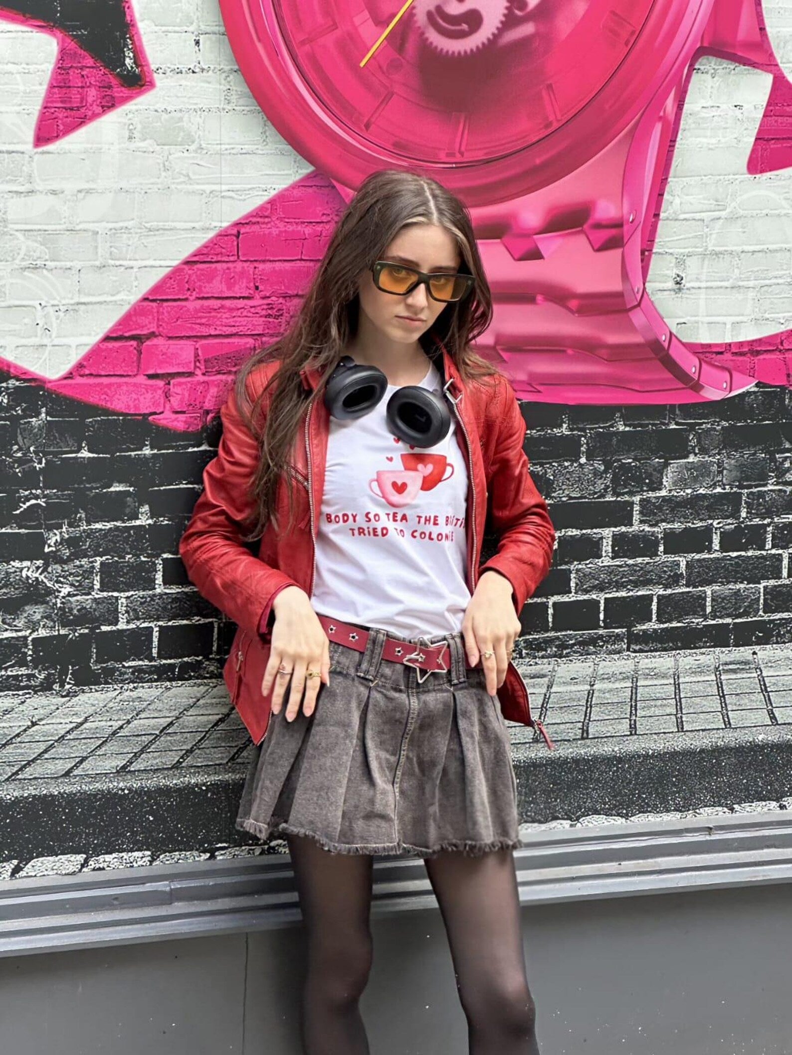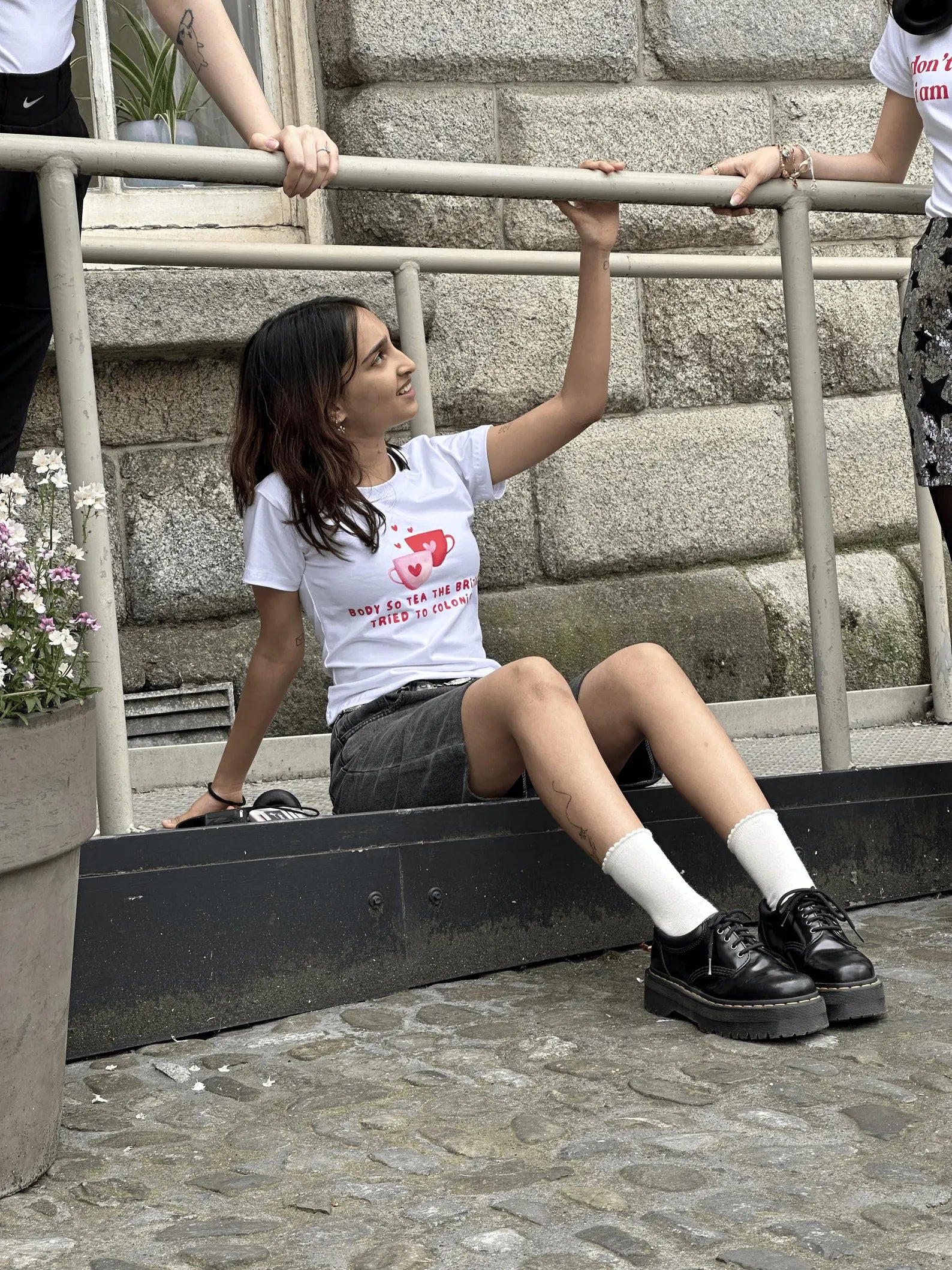 Slay your style with our premium Y2K-inspired women's t-shirt featuring the cheeky “Body So Tea The British Tried To Colonise” quote with adorable teacup hearts. Crafted from a luxurious blend of 92% cotton and 8% elastane, this tee offers the perfect balance of comfort and stretch while maintaining complete opacity – no see-through concerns here.